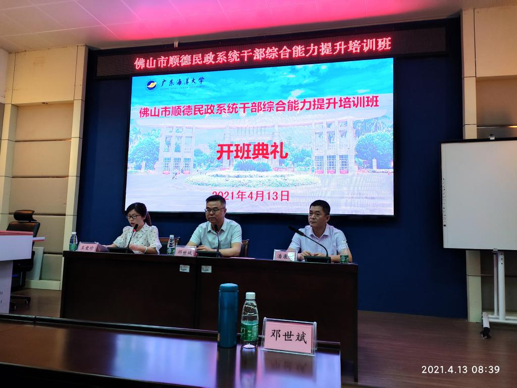 4月13日上午,佛山市顺德民政系统干部综合能力提升培训班在我校湖光校区博物馆会议室顺利开班。佛山市顺德民政系统邓世斌科长、williamhill英国潘康培副院长以及培训班40名学员和相关人员参加开班典礼。开班典礼由williamhill英国王爱珍主持。