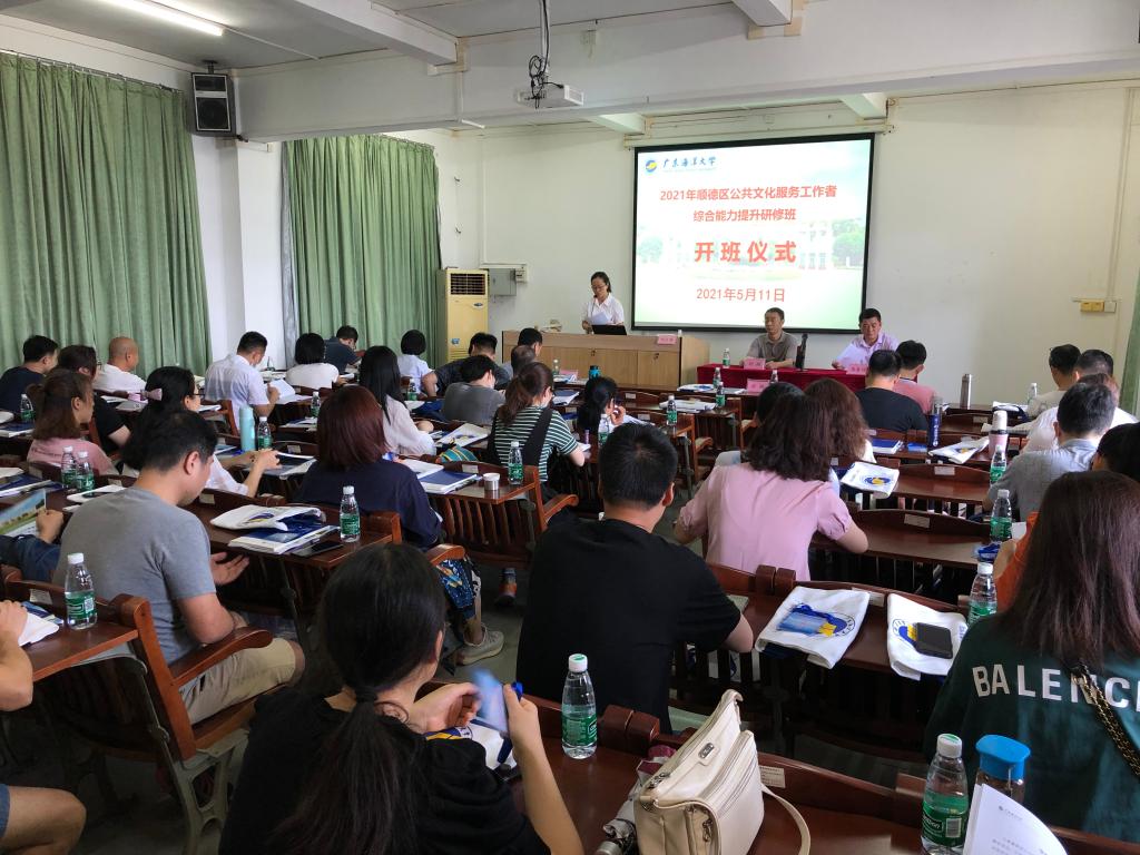 5月11日上午,2021年顺德区公共文化服务工作者综合能力提升研修班在我校成教楼414教室顺利开班。佛山市顺德图书馆馆长舒翔、副馆长卢应斌、佛山市顺德区博物馆副馆长彭有结、佛山市顺德区清晖园博物馆副馆长陈雄峰、williamhill英国副院长潘康培以及研修班46名学员参加开班典礼,开班典礼由williamhill英国刘文春主持。