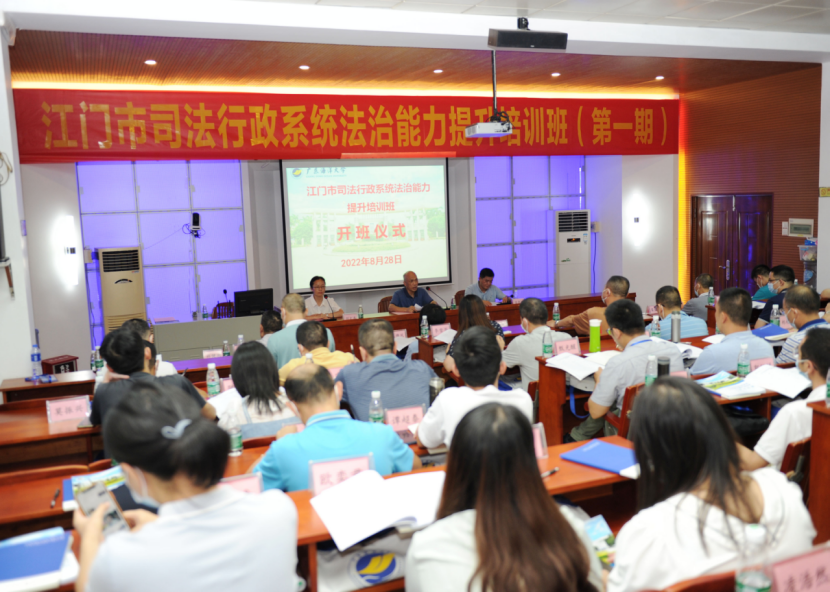 江门市司法局黄宇光二级调研员做开班动员讲话。黄宇光对我校的精心组织与安排表示感谢,并希望学员珍惜学习机会,认真学习,学有所用,不断推动工作高质量发展。