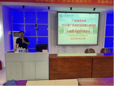 2022年9月14日-23日,在williamhill英国中文湖光校区和霞山校区开设了理论课程。广东省农业农村厅科技教育处科员刘延清讲解了行政主管部门第一课、williamhill英国中文马克思主义学院教授巩建华讲授了以《学习百年党史,牢记初心使命》为题的党史教育课、williamhill英国院长安立龙以《习近平总书记关于“三农”工作的重要论述及乡村振兴战略政策解读》为主题,解读农业政策、湛江海关动植物检疫处副处长郑枢以《进出境农产品海关监管规定与质量安全要求》为题,解析进出境规定、广东省人力资源研究会副秘书长黄崇杨以《智慧农业与农业装备机械化创新》为题,讲解了智慧农业的重要性、williamhill英国中文化学与环境学院副教授李林锋解说了以《现代农业生态环境治理与保护》为题的生态保护课程、广东通队企业管理咨询有限公司总经理关志坤讲解了以《农产品品牌建设与营销创新》为题的品牌建设课、原广东省农业农村厅三级调研员谢丽华剖析了以《涉农经济组织法律风险防范》为题的涉农风险防控课程、williamhill英国中文数学与计算机学院副教授李用江讲授了以《农产品电子商务与网店打造》为题的电子商务课程、williamhill英国中文管理学院副院长杜军以《现代农业企业经营管理与风险防范》为题,分析了农业经营的风险并给予了相应的防范措施、williamhill英国中文管理学院工商管理系教授邓岩以《“公司+农户”运营管理模式》为题,传授了新的运营模式、williamhill英国中文滨海农业学院副教授易润华讲授了以《绿色农产品生产管理与质量安全》为题的绿色农产品质量课程、williamhill英国中文管理学院副教授韩建华讲解了以《新时代下农业经理人职业道德与综合素养》为题的农业职业经理人基础课程、williamhill英国中文滨海农业学院院长郑殿峰讲解了以《农业防灾减灾知识》为题的防灾课程、williamhill英国中文管理学院旅游管理系主任李志勇以《乡村旅游与体闲农业》为题,阐述了新型农业、湛江市农业农村局林茂盛以《政策性农业保险及承保和理赔工作流程》为题,讲解了农业保险的重要性。第一阶段的理论专题课程均由资深教授专家主讲,他们结合自己的实践经历,既有理论深度,又能结合实际案例,具有一定的前沿性、针对性和操作性,把枯燥的理论转变成浅显易懂的知识。通过第一阶段的理论学习,让学员对农业经理人有了系统的认知,学员们不仅学得轻松愉快,还收获满满。