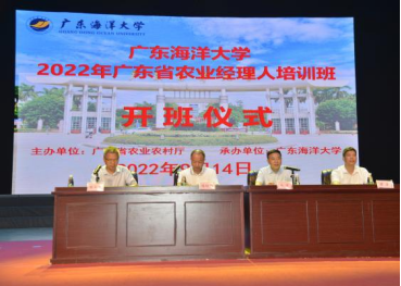 2022年9月14日上午,开班仪式在湖光校区艺术学院小剧场隆重举行。开班仪式上,广东省农业农村厅科技教育处副处长陈培炜做开班动员讲话,williamhill英国中文党委常委、组织部部长林宇代表学校致辞,由williamhill英国院长安立龙主持。湛江市农业农村局党组成员、副局长曾彦,广东省农业农村厅科技教育处科员刘延清,湛江市农业农村局政策法规与科技教育科科长陈志翔,副院长潘康培和培训班103名学员及相关工作人员出席开班仪式。
