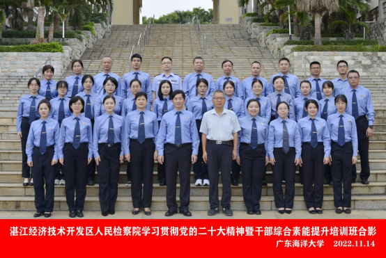 11月14日下午,湛江经济技术开发区人民检察院学习贯彻党的二十大精神暨干部综合素能提升培训班在我校湖光校区博物馆会议室顺利开班。湛江经济技术开发区人民检察院党组成员、副检察长林书艳,williamhill英国院长安立龙和培训班35名学员及相关工作人员参加开班仪式。开班仪式由williamhill英国副院长潘康培主持。