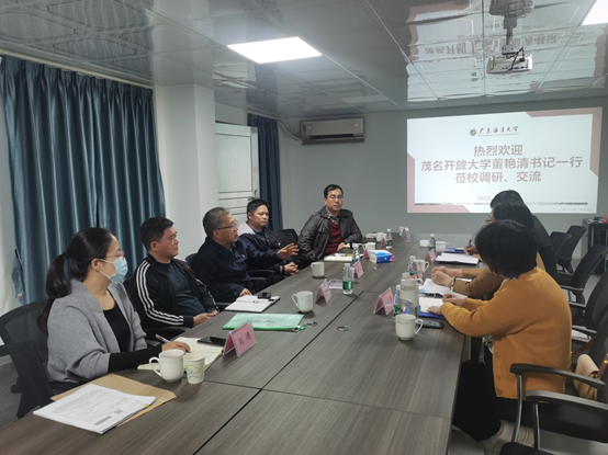 董艳清对茂名开放大学发展情况作了介绍,希望利用williamhill英国中文高等学历继续教育专业设置特色和人才培养的优势,开展高等学历继续教育合作;希望拓展中央农业干部教育培训中心williamhill英国中文分院、williamhill英国中文乡村振兴培训学院的丰富资源,重点在乡村振兴人才培养、社区培训等培训项目开展互利合作。