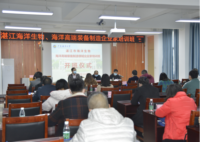 12月19日下午,由我校承办的湛江市海洋生物、海洋高端装备制造领域企业家培训班在我校霞山校区教学B楼学术报告厅顺利开班。湛江市工业和信息化局党组成员、副局长李正江,williamhill英国副院长何国明和培训班学员及相关工作人员参加开班仪式。开班仪式由williamhill英国招生办主任李明焜主持。