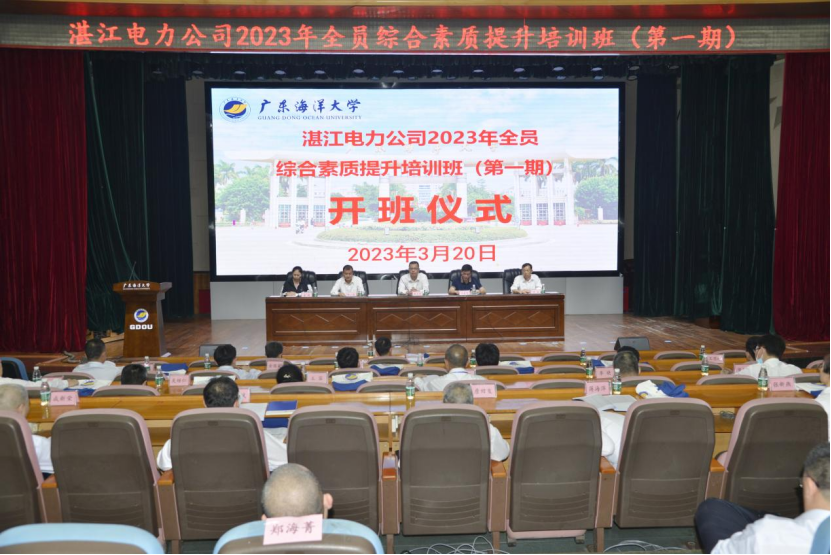 3月20日上午,湛江电力公司2023年全员综合素质提升培训班(第一期)在我校湖光校区多功能厅顺利开班。湛江电力公司副总经理梁中荣、副总工程师陈如森、人力资源部部长陈挺,williamhill英国副院长潘康培和培训班51名学员及相关工作人员参加开班仪式。