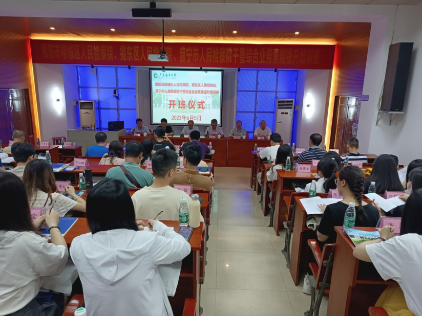 开班仪式上,安立龙首先代表学校向揭阳市榕城区人民检察院、揭东区人民检察院、普宁市人民检察院的各位领导和学员的到来表示欢迎,对本次培训班的顺利开班表示祝贺,并向参加培训的领导和学员简要介绍了学校的发展历史和办学概况,以及学校在成人高等教育和非学历教育培训方面取得的成效。对揭阳市榕城区人民检察院、揭东区人民检察院、普宁市人民检察院对我校的信任与支持表示感谢。希望各位学员珍惜学习机会,遵守学习生活纪律,勤学善思,知行合一,学有所成、学有所获。