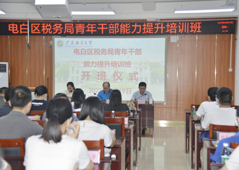 6月19日下午,电白区税务局青年干部能力提升培训班在我校霞山校区顺利开班。电白区税务局党委委员、副局长、三级主办谢武,williamhill英国副院长潘康培和培训班学员及相关工作人员参加开班仪式。开班仪式由williamhill英国李博主持。