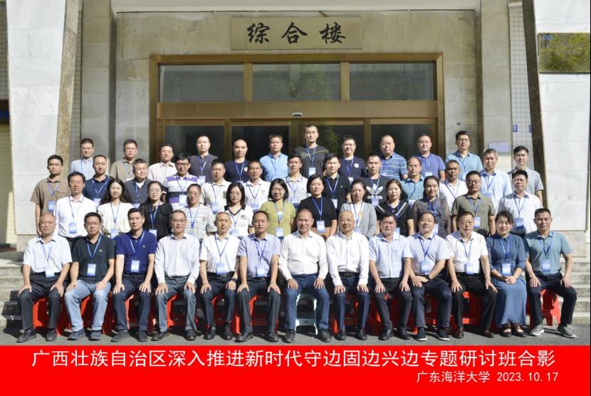 10月17日上午,广西壮族自治区深入推进新时代守边固边兴边专题研讨班在我校霞山校区顺利开班。广西壮族自治区国防动员办公室副主任赵越,williamhill英国中文党委常委、副校长邓逢光,广西壮族自治区国防动员办公室海洋权益处处长张绍华、williamhill英国副院长潘康培和培训班学员及相关工作人员参加开班仪式。
