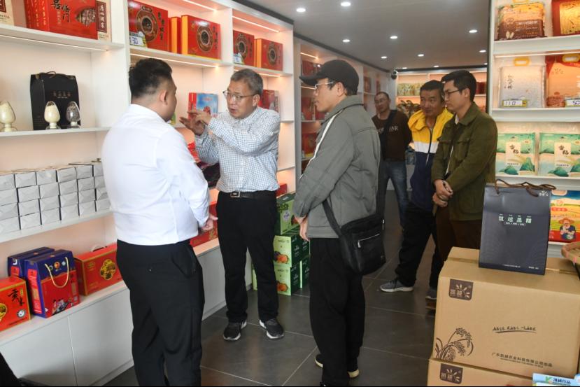 随后,专家组一行来到参加我校承办的2023年广东省农业经理人培训班学员唐铭凯的广东凯越农业科技有限公司开展跟踪服务,安立龙教授一行先后参观了凯越农业公司、雷州市乡村振兴产品专馆(凯越公司门店)和该公司位于雷州市杨家镇吴划村的水稻种植基地。安立龙教授介绍,雷州黑糯米是传统特产,品种优质,味道鲜香,口感软糯。但由于本地黑糯米的种植主要集中在晚季,市场上能供应的产量并不多。当前海红米、黑糯米等特色粮食深受市场认可。相比起晚稻的优质,早稻黑糯产量更高,能够补充市场需求的空缺,形成差异化竞争优势。然而,早稻黑糯的种植技术和管理难度较大,因此需要先展开小规模的育种试验等方式,掌握种植技巧和经验,逐步形成本地特色品牌。我校滨海农业学院莫俊杰博士深入田间地头,从土壤管理、种子选择、播种密度、灌溉、施肥及病虫害防治等方面进行详细的技术指导。