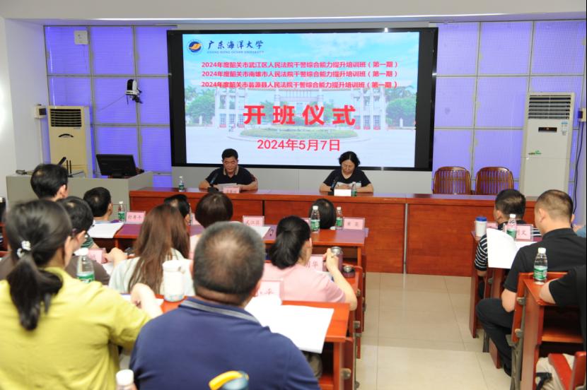 5月7日上午,韶关市武江区人民法院、韶关市南雄市人民法院和韶关市翁源县人民法院干警综合能力提升培训班在我校霞山校区顺利开班。williamhill英国副院长潘康培和培训班100名学员及相关工作人员参加开班仪式。