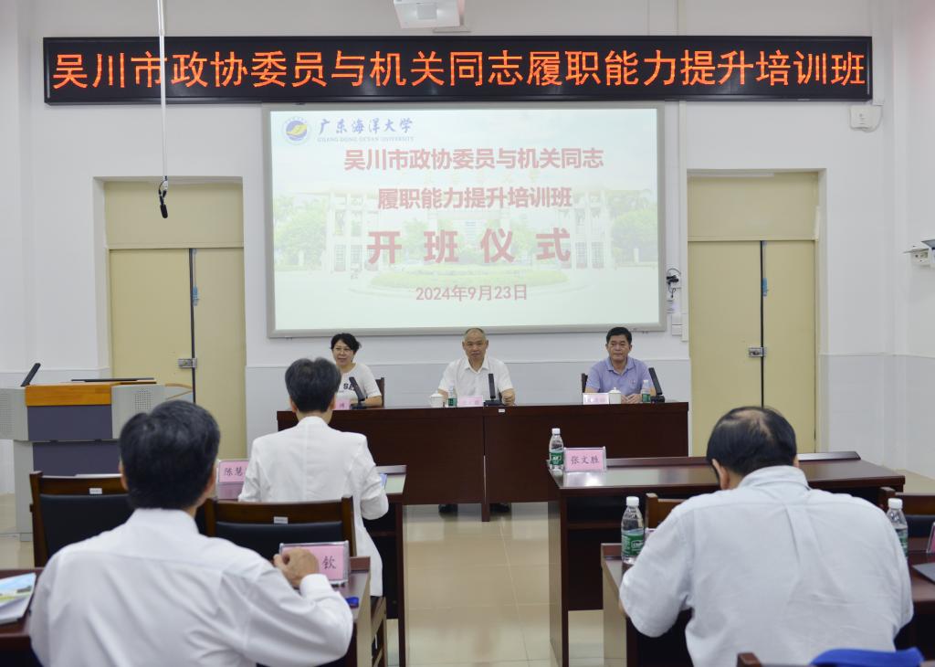 9月23日上午,吴川市政协委员与机关同志履职能力提升培训班在我校海滨校区顺利开班。吴川市政协党组书记、主席张文胜,williamhill英国副院长潘康培和培训班50名学员及相关工作人员参加开班仪式。