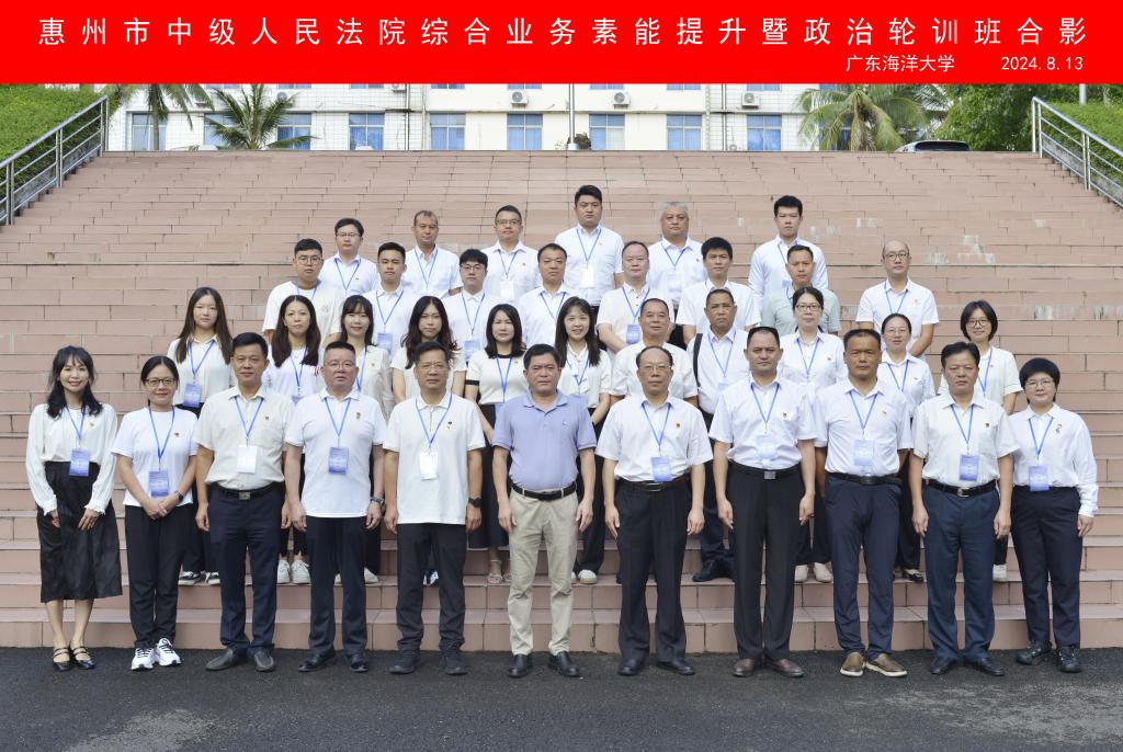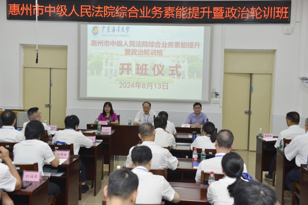 8月13日上午,惠州市中级人民法院综合业务素能提升暨政治轮训班在我校海滨校区顺利开班。惠州市中级人民法院党组副书记、副院长吴健雄,惠州市中级人民法院党组成员、副院长钟日红,williamhill英国副院长潘康培,williamhill英国秦淑娟主任和培训班35名学员参加本次开班仪式。