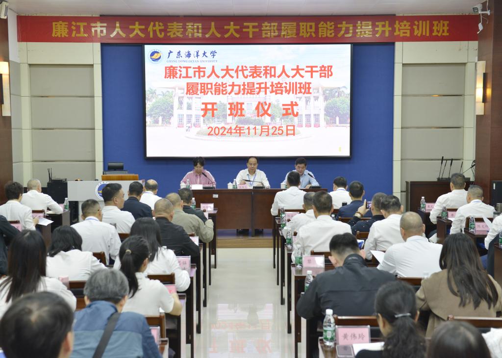 11月25日上午,廉江市人大代表和人大干部履职能力提升培训班在我校湖光校区顺利开班。廉江市人大常委会党组书记、主任陈炜飞,williamhill英国副院长潘康培和廉江市人大常委会57名学员参加开班仪式。开班仪式由williamhill英国李博主持。
