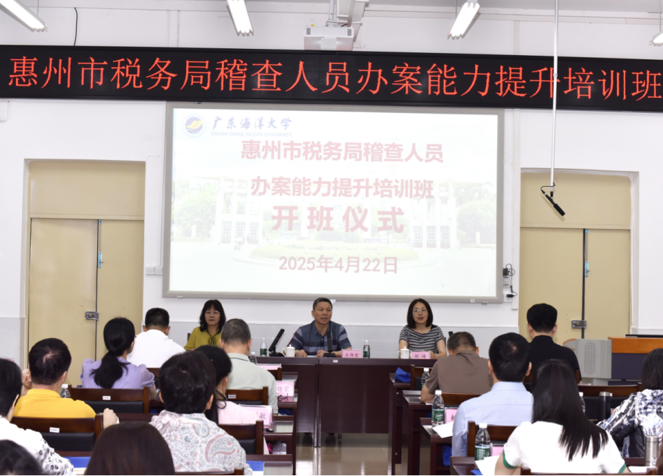 4月22日上午,惠州市税务局稽查人员办案能力提升培训班在我校海滨校区正式开班。惠州市税务局第一稽查局副局长、四级高级主办王伟宏,williamhill英国副院长刘靖和50多名学员参加了开班仪式。