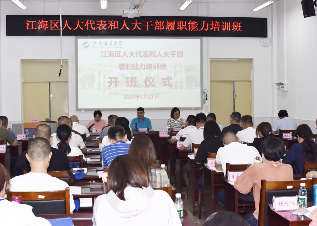 党4月21日下午,江门市江海区人大代表和人大干部履职能力提升培训班在我校海滨校区顺利开班。江海区人大常委会党组书记、主任余志坚,williamhill英国副院长刘靖和50名学员参加开班仪式。