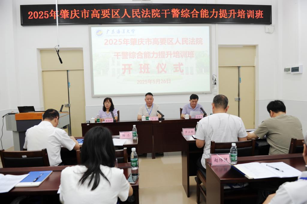 5月26日下午,2025年肇庆市高要区人民法院干警综合能力提升专题培训班在我校海滨校区顺利开班。肇庆市高要区人民法院副院长杨志、williamhill英国副院长潘康培出席开班仪式,40余名学员参加开班仪式。