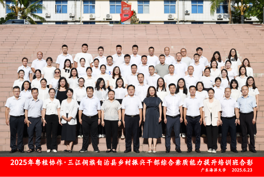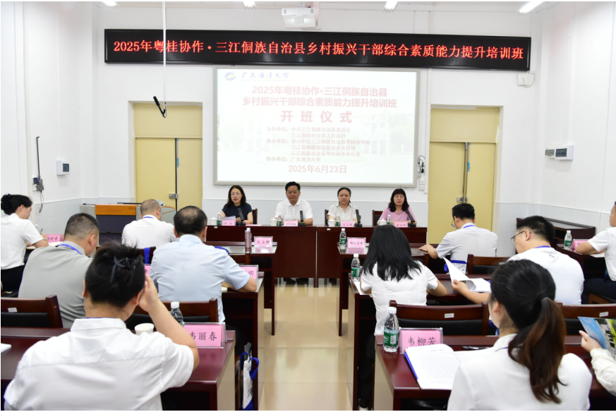 为进一步提升三江侗族自治县干部综合素质,让领导干部当好“一懂两爱”的排头兵,增强做好新时代乡村振兴工作的本领和能力,6月23日上午,2025年粤桂协作·三江侗族自治县乡村振兴干部综合素质能力提升培训班在我校海滨校区正式开班。中共三江侗族自治县委副书记刘付运宏,中共三江侗族自治县委常委、副县长吴玉珊,williamhill英国副院长刘靖和65名学员参加了开班仪式。