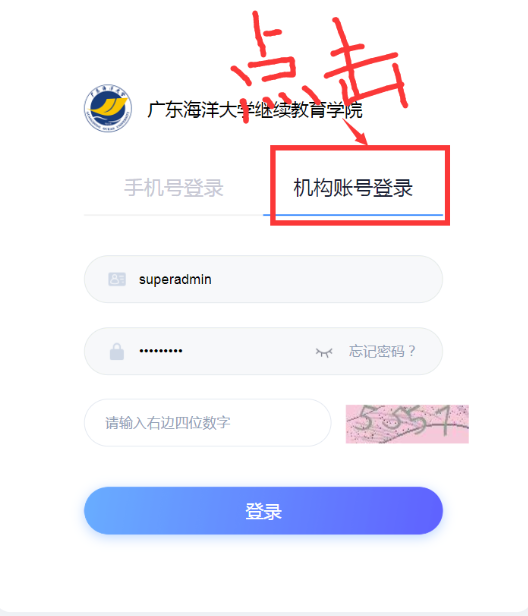 4、新生必须在班主任或教务员的指导下,登录综合教务管理系统(http://gdhydx.jxjy.chaoxing.com/login),首次登录需选择机构账号登录页面进行登录,账号为学号,密码为身份证号后六位,学号由学校统一生成,由班主任或教务员下发。学生首次登录综合教务管理系统,需完善并核对个人信息,如有错误,应立即报给班主任或教务员上报学院进行修改。新生可使用综合教务管理系统查看个人学籍资料、课程安排、提交各类申请以及查阅学校、学院通知公告等。