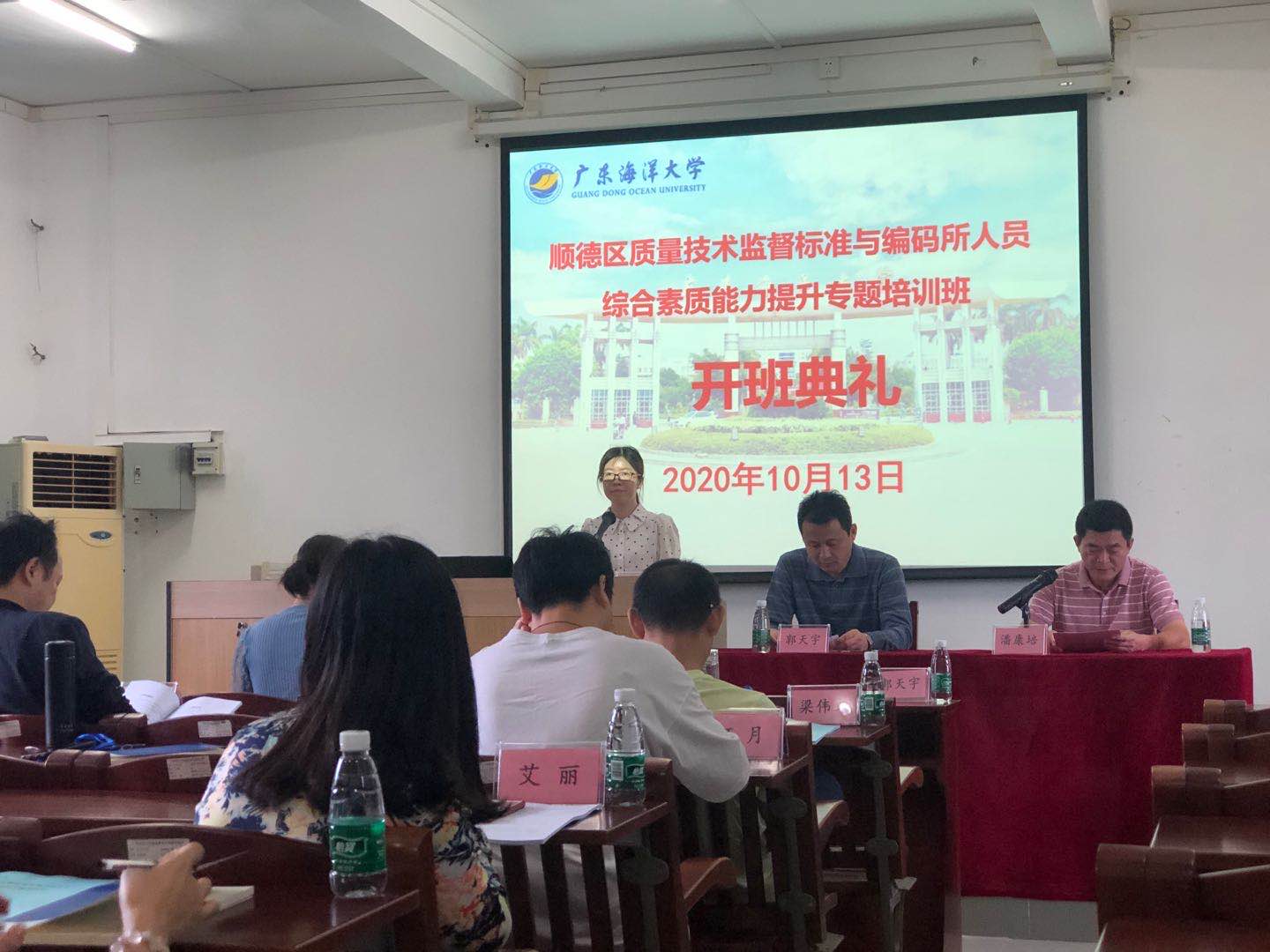 10月13日上午,佛山市顺德区质量技术监督标准与编码所人员综合素质能力提升专题培训班在我校霞山校区顺利开班。佛山市顺德区质量技术监督标准与编码所郭天宇副所长出席开班仪式。williamhill英国副院长潘康培出席开班仪式并致欢迎词,开班仪式由williamhill英国王爱珍主持。