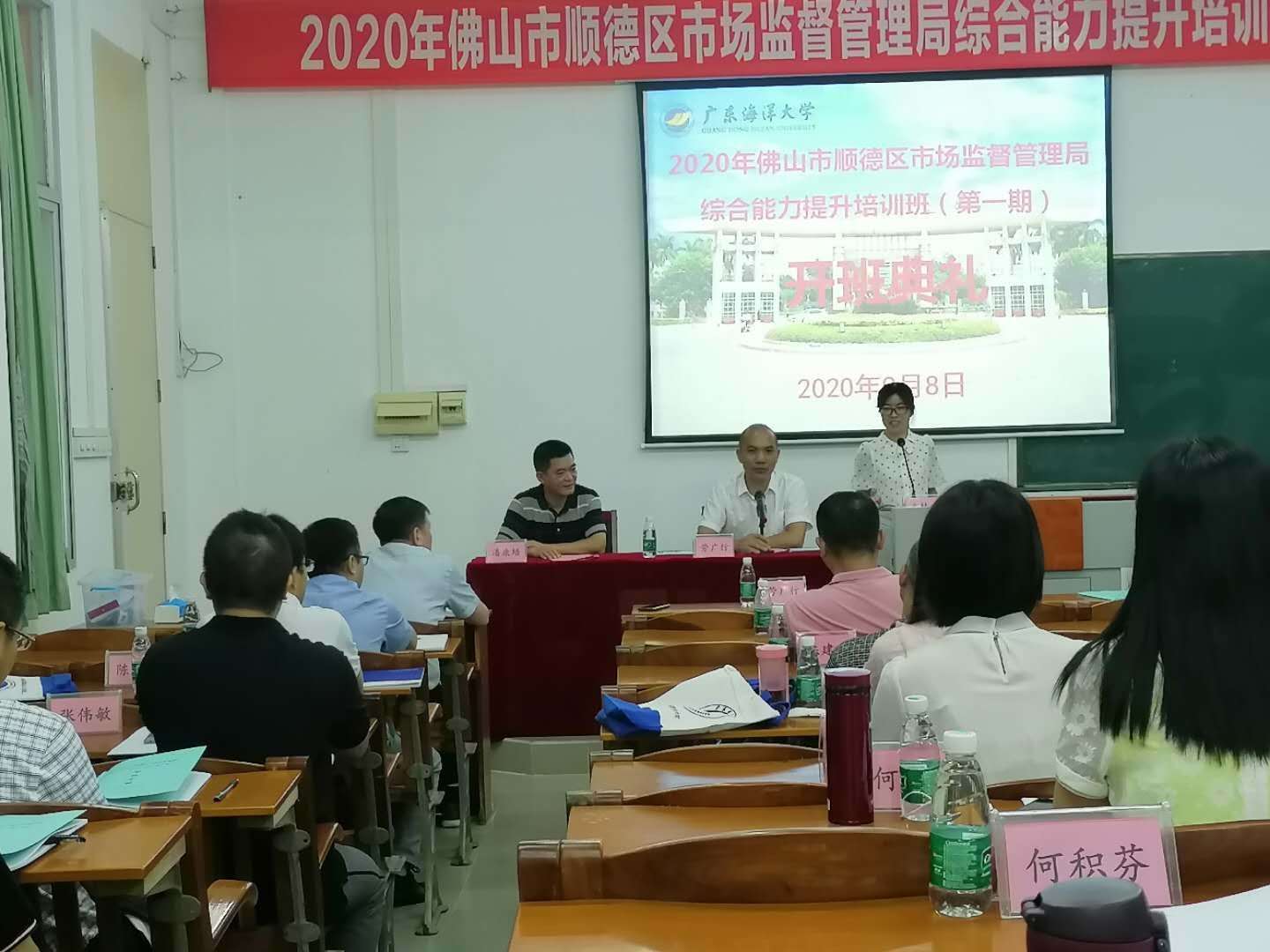 9月8日上午,佛山市顺德区市场监督综合能力提升班(第一期)开班典礼在我校霞山校区报告厅顺利举行。顺德区市场监督管理局劳广行局长、胡公会副局长出席开班仪式。williamhill英国副院长潘康培出席开班典礼并致欢迎词,开班典礼由williamhill英国王爱珍主持。