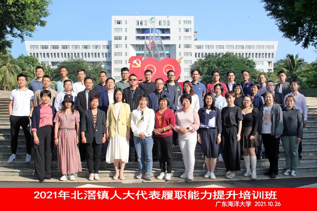 10月26日上午,我校在湖光校区海洋与气象学院107教室举行2021年北滘镇人大代表履职能力提升培训班(第一期)开班仪式,北滘镇人大主席杜伟泉、williamhill英国副院长潘康培出席开班仪式,北滘镇人大系统38名学员参加此开班仪式。