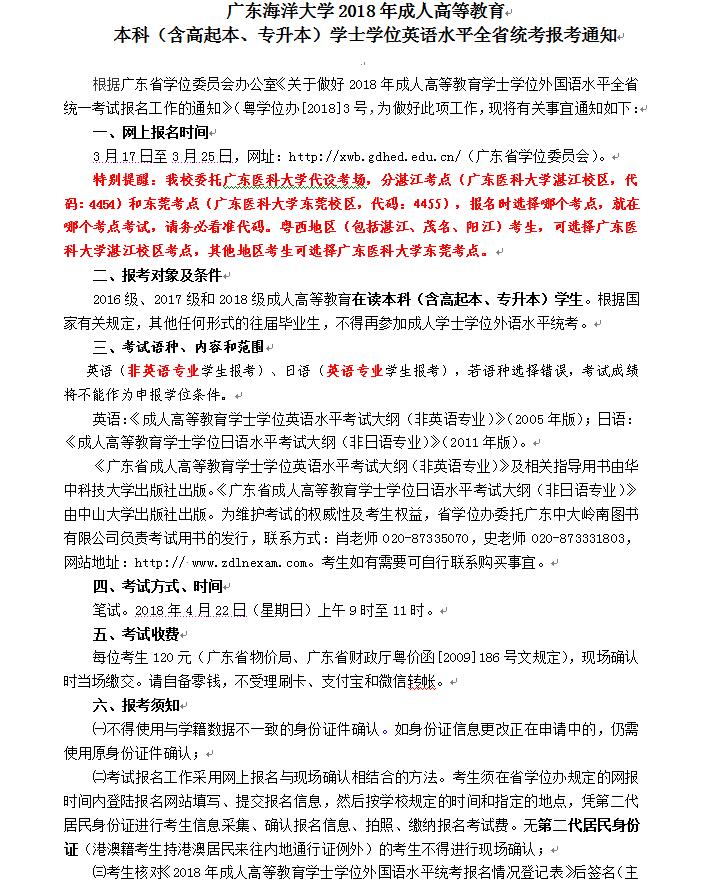 2018年成人高等教育本科学士学位英语水平全省统考报名的通知.doc