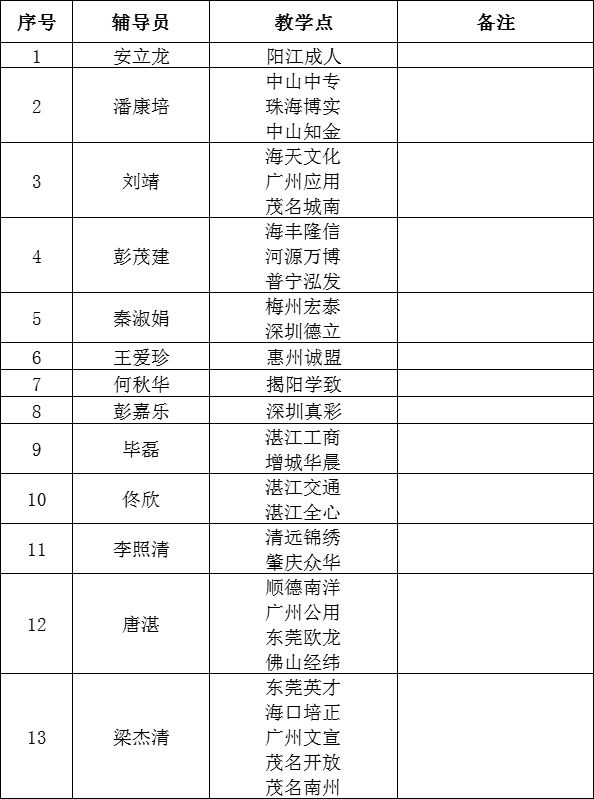 二、williamhill英国中文学历继续教育校外教学点专项管理(辅导)员名单及所联系教学点