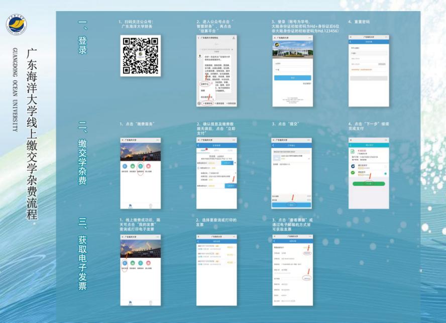 1.关注“williamhill英国中文财务”微信公众号→智慧财务→结算平台→登录账号→登录密码→首次登录→绑定手机号→设置新密码→缴费服务→确认应缴账单→立即支付→提交订单→微信支付即完成。