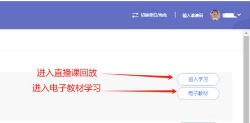 ③直播课回放与电子教材学习:点击 “我的课程” 板块,每门课程将显示直播课回放和电子教材学习两个入口,选择对应入口即可进行学习。